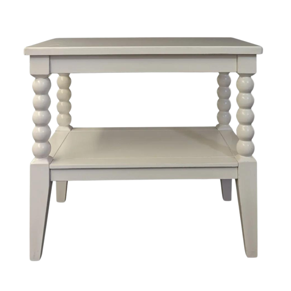 Thirty-seven inch square with bamboo look leg details. Lower shelf can accommodate our B-300+ storage basket.